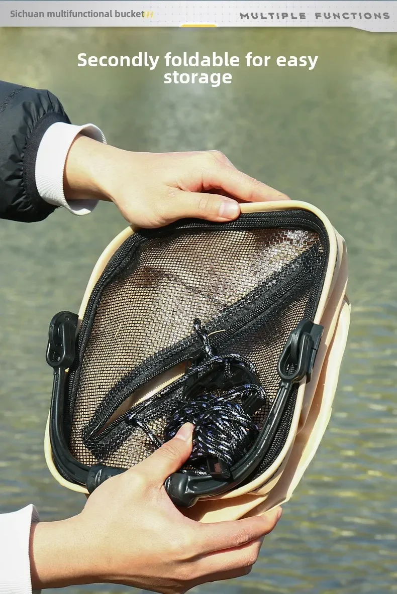 Foldable Design: The fishing bucket's collapsible design makes it easy to store and transport. It can be collapsed to a compact size, making it easy to pack in your backpack or car trunk. This feature is especially useful for those who love to travel and explore the outdoors.