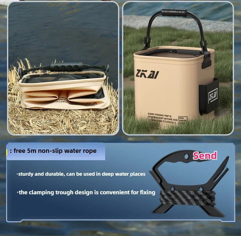 This fishing camping bucket is perfect for storing live bait, carrying water, and even washing your car,making it easy to carry around.