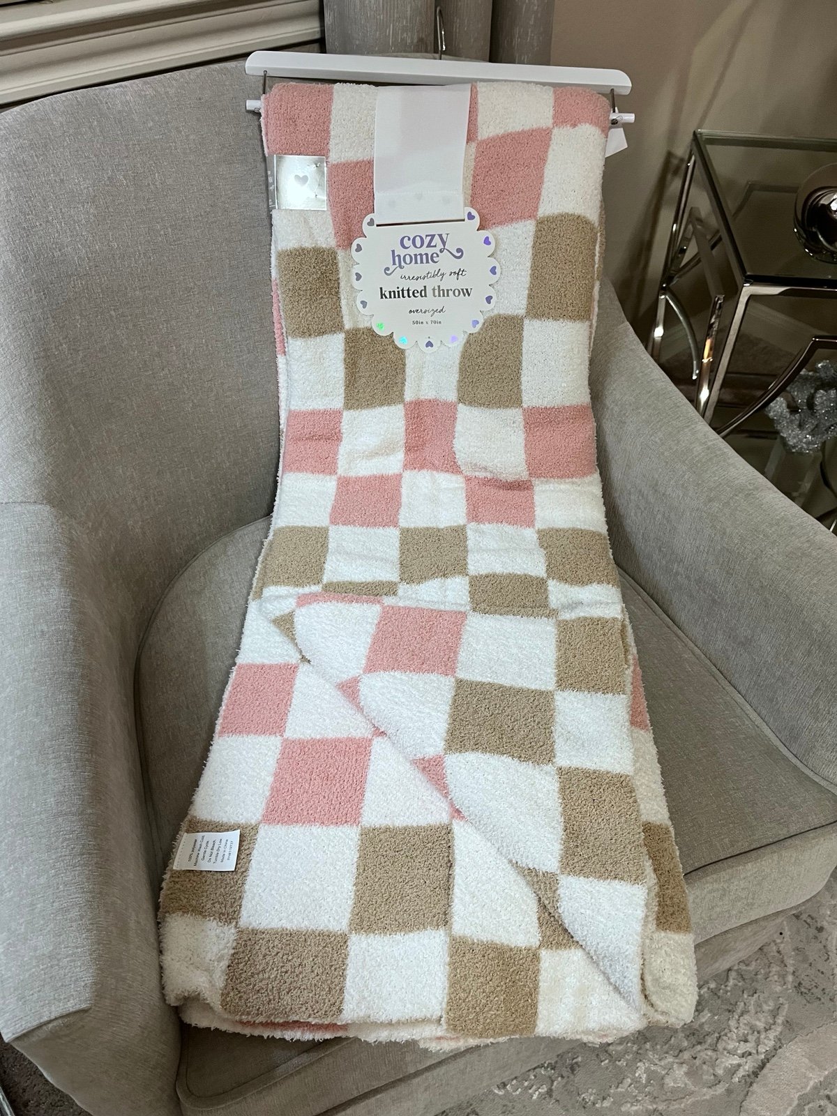 1-NWT COZY HOME PINK TAUPE AND WHITE DESIGN DOBLE SIDED DOBLE LAYER-THROW BLANKET
