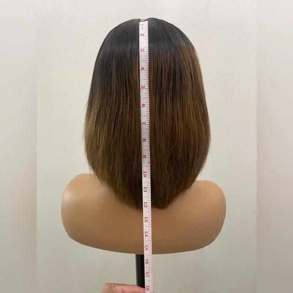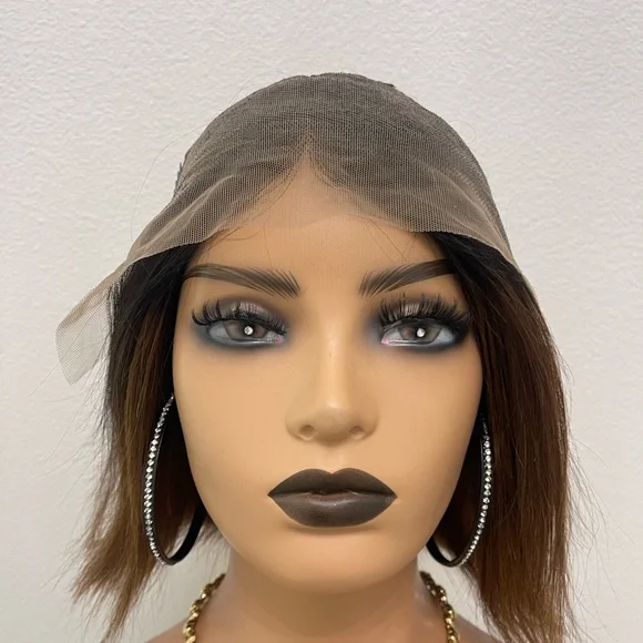 New! 12” Ombré T1B/4 Brown, Bob Cut Lacefront WigCan be worn Glueless, has combs and adjustable straps.We don’t recommend bleaching already bleached hair it may damage the hair due it already being bleached, you can dye it other colors, flat iron, curl, or wash.Looking for more options: IG/FB: The Exotic Caribbean Virgin Hair Collection FB: HairbynayFB: Nay’s Lux Wear TT: NaysluxwearYT: Naysluxwear
