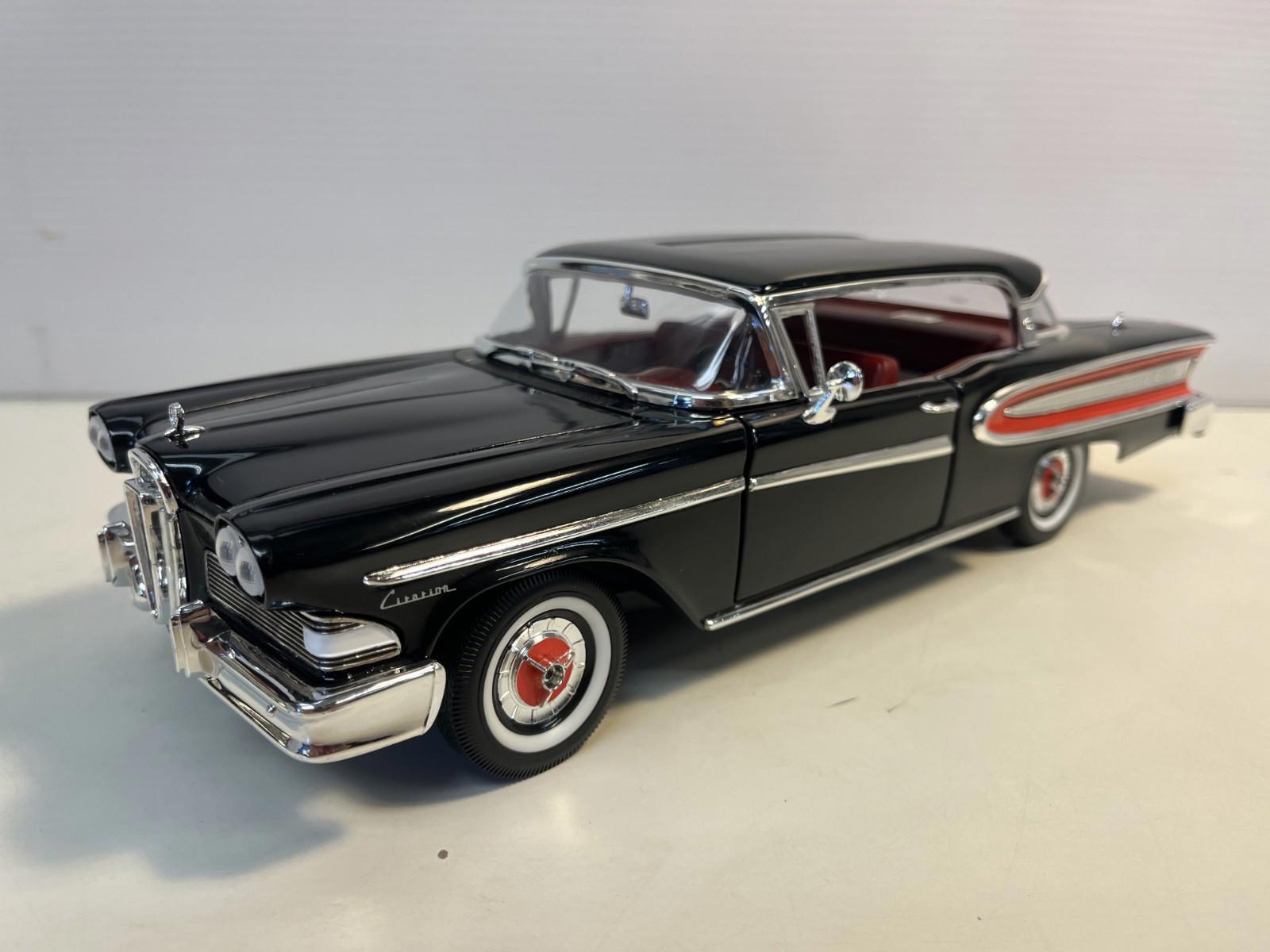 1958 Ford Edsel Citation Diecast Model in 1/18 Scale by Road Signature. This Diecast car checks all the boxes for a reasonably priced rendition of the classic die cast 1958 Ford Edsel Citation. This is a used car and may have paint imperfections and / or other defects but is priced accordingly. There is no box but I will pack with care. Please review pictures carefully before purchasing.