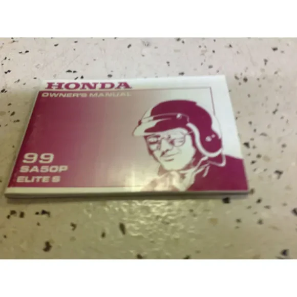 1999 Honda SA50P ELITE S Factory Owners Manual. Full of information and illustrations, covers a lot, no missing pages, great manual to have when owning a HONDA and will keep your BIKE on the road. This manual will save you money in repairs/service.This manual is published by HONDAWe ship everywhere, we offer combined shipping, we don't offer local pick up.if you have further questions feel free to message us or call us @ If you have further questions please contact us thru the message feature we usually respond within an hourOrders are usually shipped within 2 weekdays of receiving payment. We ship every weekday,shipping times are estimates only, and are not guaranteed by the post office.FEEDBACKWe will leave POSITIVE Feedback after we receive your payment. Please do not forget to give us POSITIVE Feedback and FIVE STARS on all of the Detailed Seller Ratings!If you are not satisfied with your shopping Experience, please contact us to get a solution before you decide to leave a NEUTRAL or a NEGATIVE Feedback, We will do our best to solve any problems for you as soon as possible.We will provide you with the BEST POSSIBLE service because the POSITIVE Feedback and FIVE STARS are what we are striving for. Please email me through "My Messages" or "Ask Seller Questions" if you have any question about our listings or your purchase.Please give us Five Star Rating! Thank you very much!Track Page Views WithAuctiva's FREE Counter