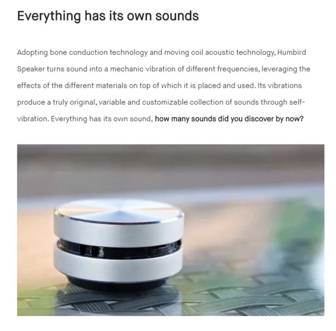The speaker is the world's smallest and most versatile bone conduction speaker that allows you to have a different but still spectacular sound experience anywhere, in any setting. Turn anything hollow into a speaker, anytime.