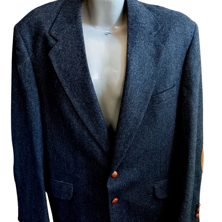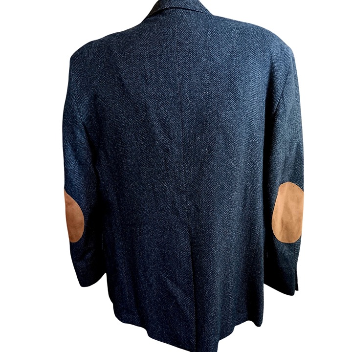 This vintage men's blazer exudes timeless elegance with its rich wool fabric and classic design. The suede elbow patches and leather buttons add a touch of sophistication and durability, making it an ideal choice for those who appreciate vintage fashion. Its tailored fit and enduring style ensure it remains a cherished piece in any wardrobe.