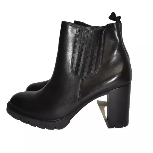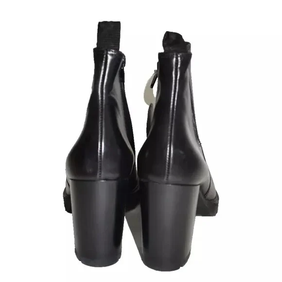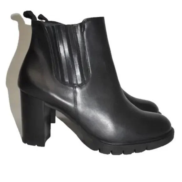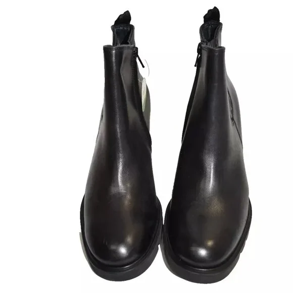 STORE RETURN- EXCELLENT LIKE NEW- PLEASE SEE PICTURES6.5 AU = 9 USDETAILS & CAREA treaded sole and stacked block bring a touch of edge to this round-toe Chelsea boot featuring flexible hidden gore insets and a side zip for easy on and off.3 1/4" heel; 3/4" platform4 1/4" shaftCushioned footbedLeather upper and lining/synthetic soleMade in AUSTRIANO SHOE BOX OR BAG