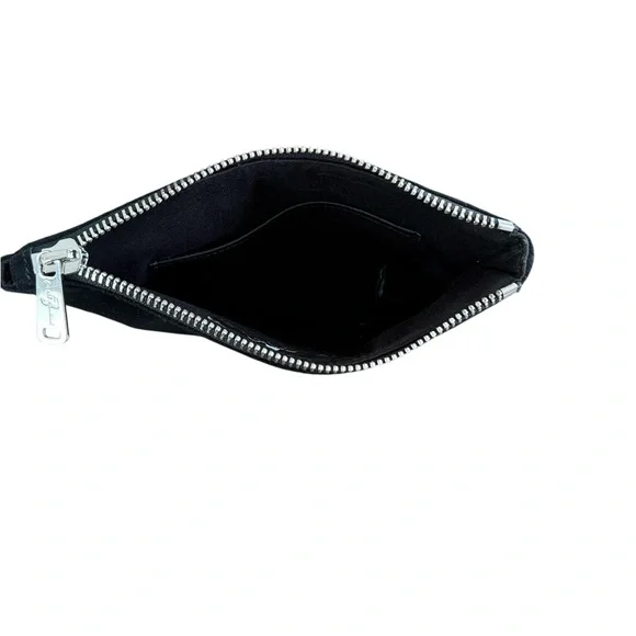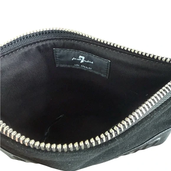 7 For All Mankind Leather Suede Embossed Pouch100% genuine leather and suede with bold embossed lettering that reads “MANKIND” across the bottom. Perfect as a travel clutch, tech pouch, or bold everyday accessory. •Material: 100% Genuine Leather (shell), 100% Cotton (lining)•Zip-top closure with silver-tone hardware•Smooth leather base with suede upper•Embossed “MANKIND” on front and subtle 7FAM logo on back•Interior: One main compartment with small slip pocket•Approximate size: 10” x 7”•Made in China•Style Code: WA43262002This is a pre owned item with normal signs of wear like scuffs, scratches, leather creasing or minor stains. Sold as is.Reasonable offers are welcome and always considered. Please note: All zippers on our pre-loved items have been carefully tested and are in proper working order. No signs of damage have been observed during inspection.