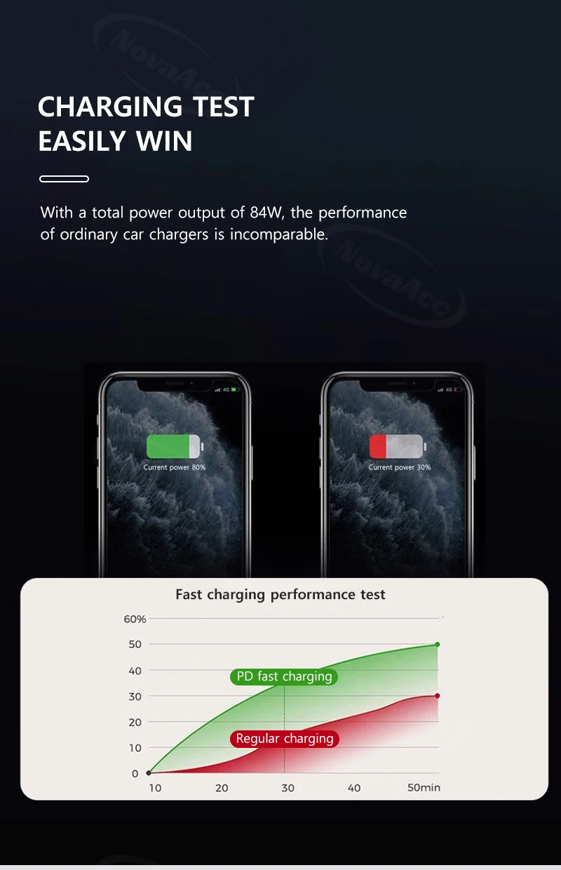 With a total power output of 84W, the performance of ordinary car chargers is incomparable.
