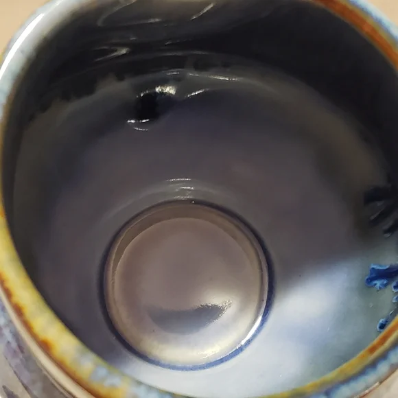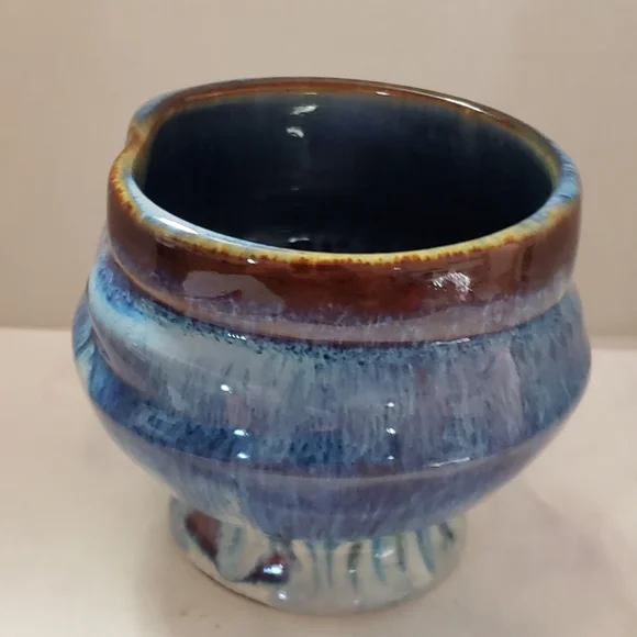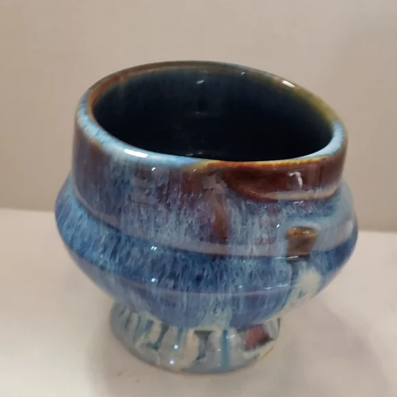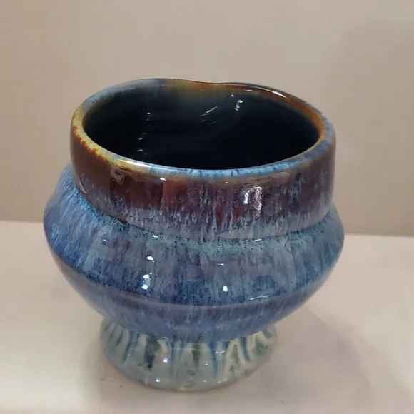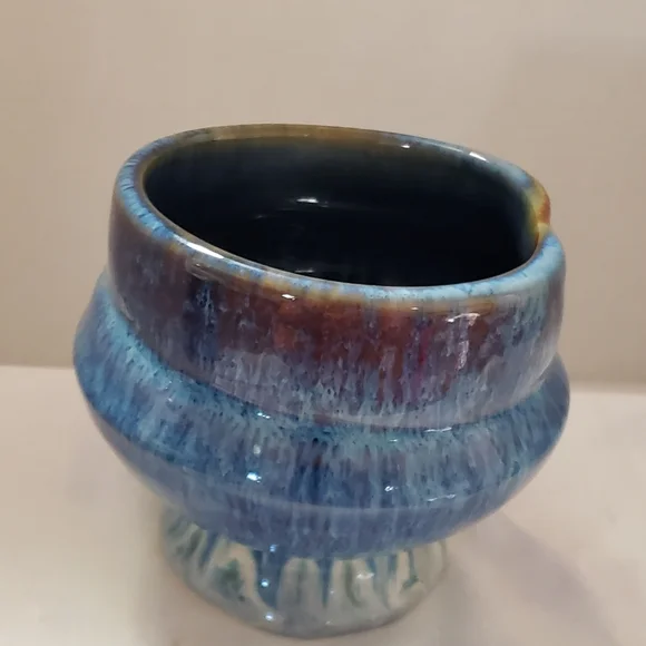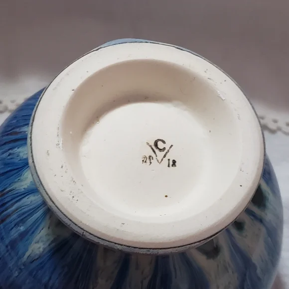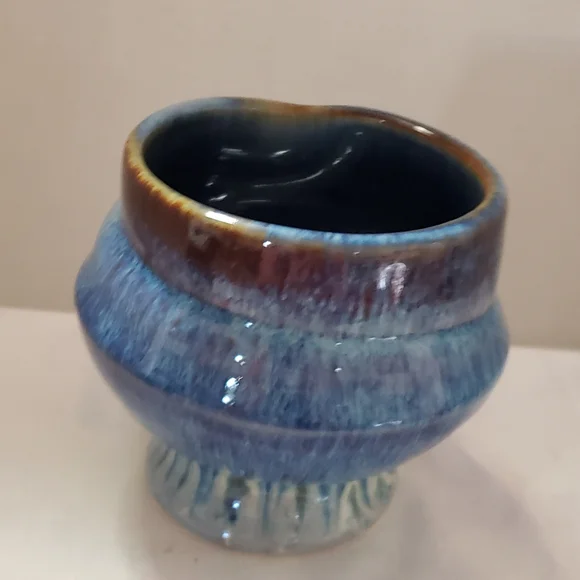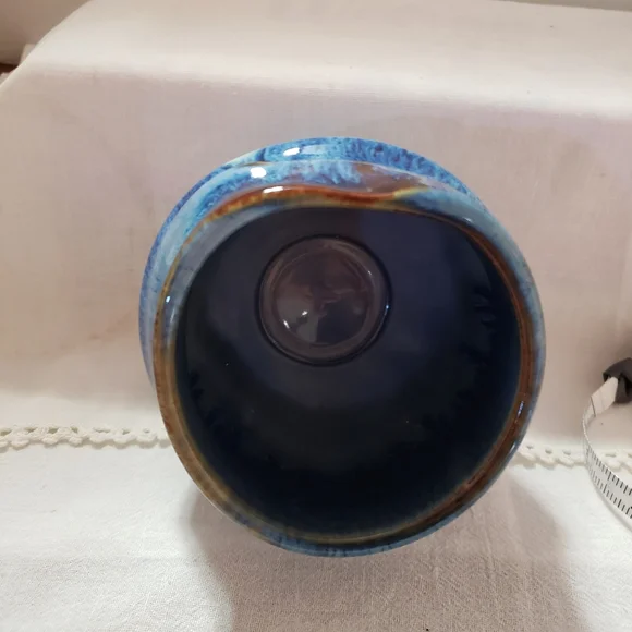 Beautiful and stunning Drip glaze of Blue, Brown, and White.Handmade by Bill Campbell Pottery in Cambridge Springs, Pennsylvania in 2018, three years before they closed permanently. This piece is in perfect and excellent condition.No chips, cracks or crazing. It had been stored before I acquired it. It is stamped on the bottom: CV 2018Bill used several different signature methods and this was the last one before he closed permanently. The Campbell pottery studio and store in Cambridge Springs PA is no longer in existence. Any pieces made by Bill Campbell are in limited supply. Beautiful design . Great conditionReference: Toy Chest 1