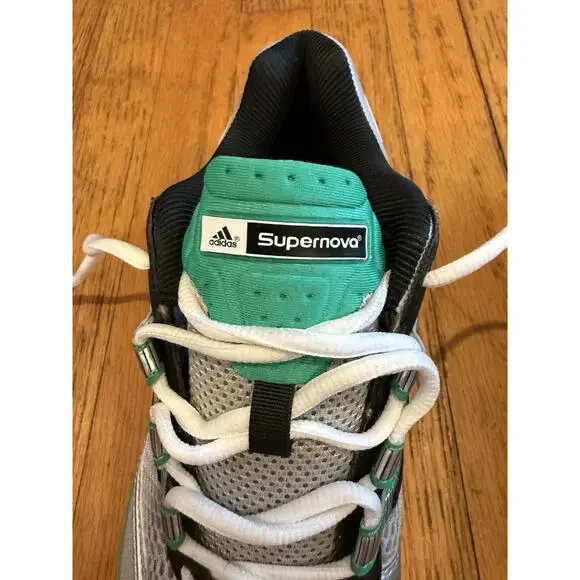 Adidas Supernova Cushion 7 IG1745 Matte Silver / Core Black / Surf Green Size 9Classic style meets innovation in these adidas shoes. Reviving an early 2000s runner, they blend retro appeal with modern comfort. Glide through your day supported by an EVA midsole and Adiprene cushioning. FORMOTION technology in the heel adapts to your stride for a smooth ride. Silver metallic accents and lenticular details on the midsole add flair. The breathable mesh upper keeps you coolRegular fitLace closureMesh upper with synthetic overlaysEVA midsole and Adiprene cushioningTorsion System and FORMOTIONStyle Code: IG1745Color: Matte Silver / Core Black / Surf Green