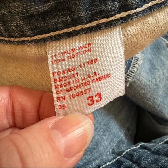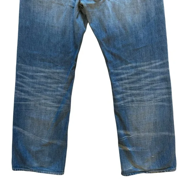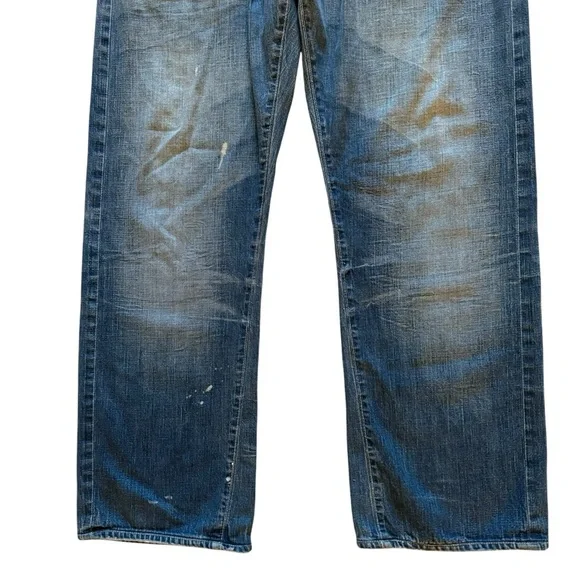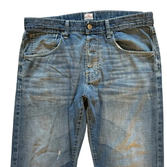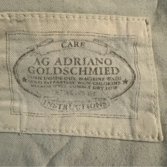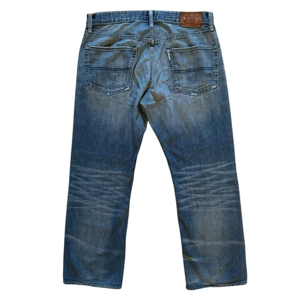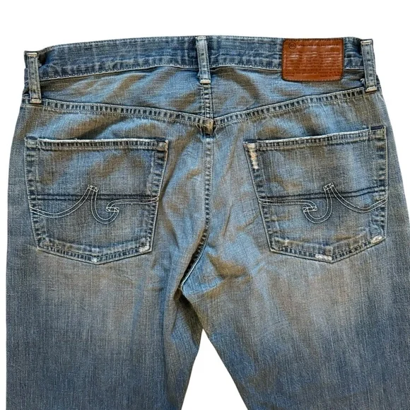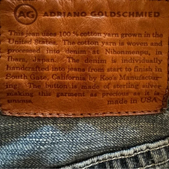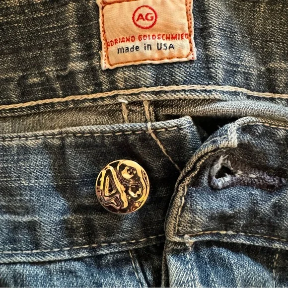 AG Adriano Goldschmied vintage Y2K Japanese selvedge denim jeans, size 33.Measures 34x29, 100% cotton with no stretch, see complete measurements below.Straight leg, sterling silver top button rivet, leather story patch, 5-pocket design, belt loops, button fly, made in the USA.Distressing includes bleach spots, whiskering, light wear to edges of pockets and bottom hems.Measurements laying flat -Waist: 17”Front Rise: 11”Hip: 22”Thigh: 13.5”Inseam: 29”Leg opening: 9”Preowned condition, no significant flaws noted. Ships from a smoke-free home.