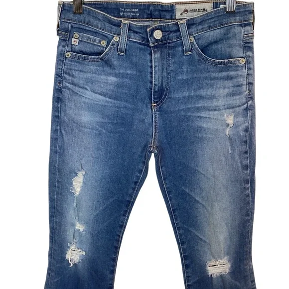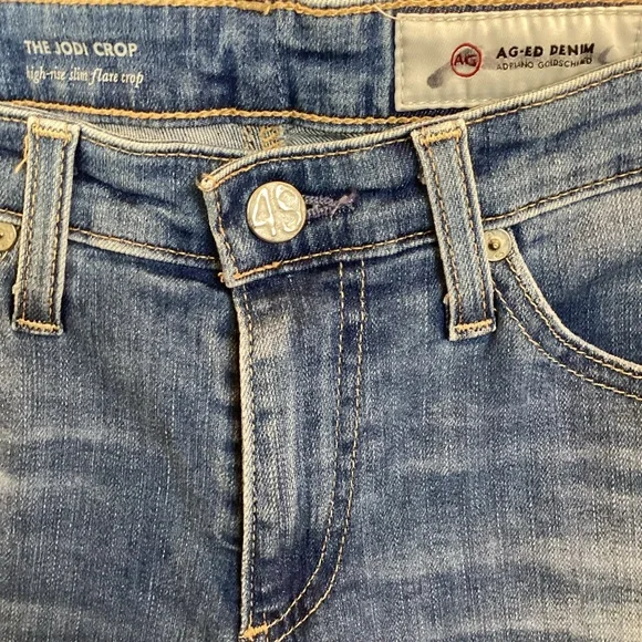 AG Adriano Goldschmied Jodi Crop High Rise Slim Flare Crop Distressed JeansSize: Womens 25Color: BlueFabric: 98% cotton, 2% polyurethaneCondition: Very Good gentle wearAppr msmts plz ✔️Rise: 9”Waistband: 14”Hips: 18”Inseam: 26”Cuff width: 7.5”Smoke Free/Pet Free HomeBundle & Save9720 M2New to POSHMARK?Use my code: RitaShops4UTo receive $10 off your first purchase!