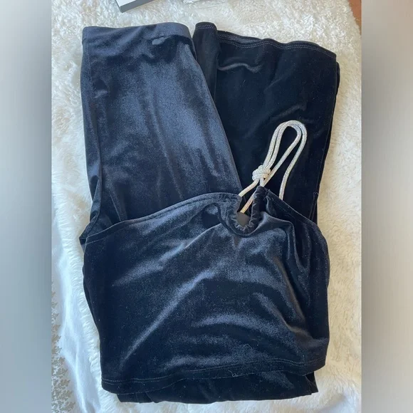 NWOT Alex & Sophia two piece matching set from Macy’s. Super cute and comfy! Only wore it once for my company Christmas party. Pants are just a little too small on me now. Rhinestone velvet cropped top, pants can be high waisted if wanted.