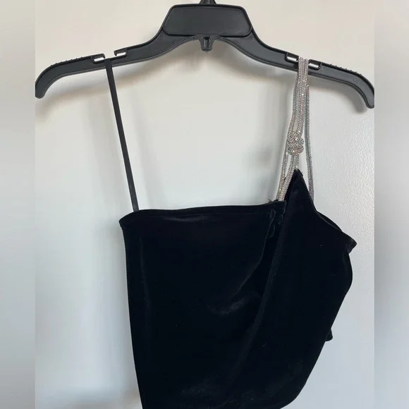 Alex & Sophia Black Velvet Two Piece Crystal Set Size Medium Top & Small Pants
