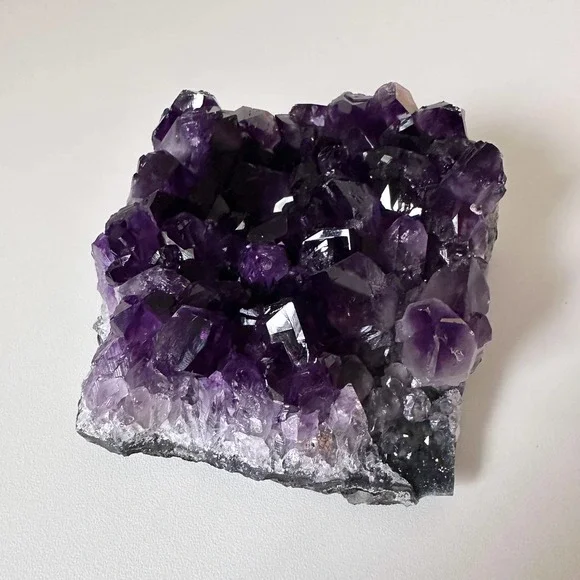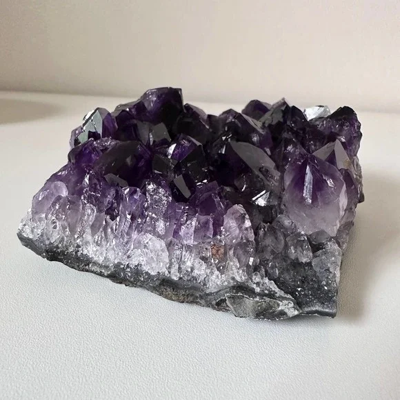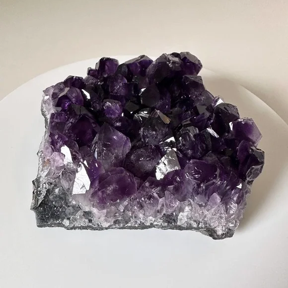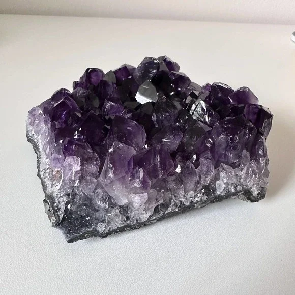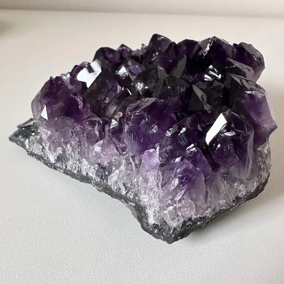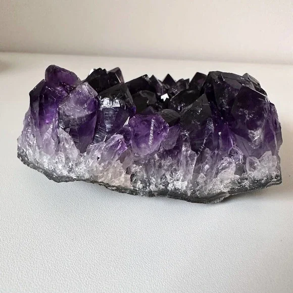 Stunning & gorgeous super sparkly dark purple JUICY Amethyst clusterThe juiciest dark Amethyst cluster I have ever laid eyes on. The color ranges from clear-crystal white at the base, to true purple & deep dark purple, to almost black. This piece has a flat base and large teeth. • Size •1.32 lbs1.7 inch height5 inches widest point*This crystal is natural and has NOT been dyed or enhanced in any wayReiki | Crystals | Spirituality | Energy work | Meditation | Vibration | Healing | Manifest | Divine | Feminine | Rock shop | Minerals | Witch | Metaphysical | Angels | Spirit | Aura | Energy | Chakra | Birthstone | Home Decor | Spiritual | Self love | Minerals | Gift | Present | Wicca | Yoga | Holistic | Health | Peace | Calm | Earth | Gemstone | Hippie | Hippy | Positive Vibes | Cleanse | Heal | Shaman