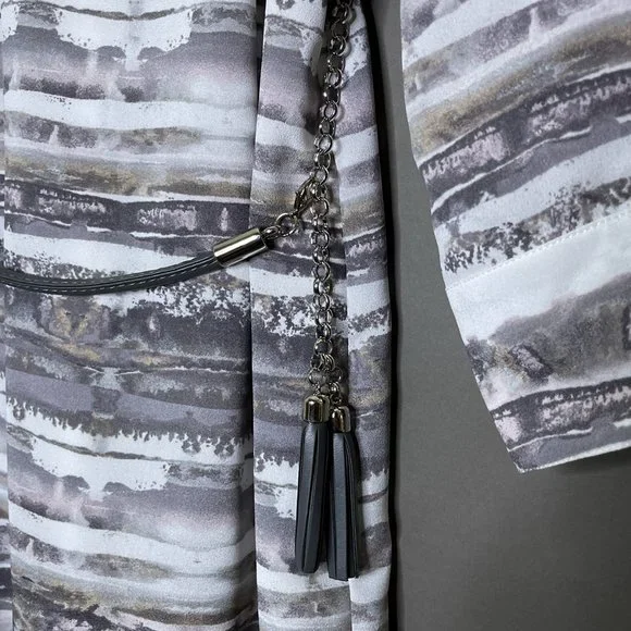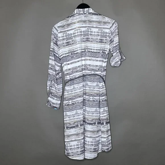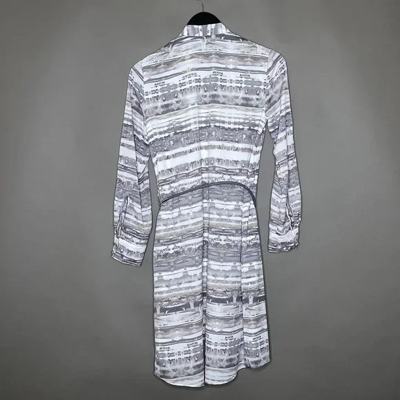 Antonio Melani Gray/White Dress With Belt And Adjustable Sleeves Size 2NEW with tags. No visible flaws.- Adjustable Sleeves - Belt with Tassels - Shell: 100% Polyester- Lining: 100% Polyester- Horizontal DesignMeasurements Done Laying Flat*Armpit to Armpit: 18 inches*Length: 37 inches*This item is pre-worn, so tiny flaws may be present despite my best efforts to spot and disclose them. Please feel free to ask any questions or request additional photos for full transparency.Measurements and condition featured in photos. (Measurements are approximate; please measure your favorite garments to ensure a proper fit.) Garments come from a smoke free home. Please let me know if you have any questions. Thanks for looking at my listing.Ships Next Business Day.Offers Welcome!