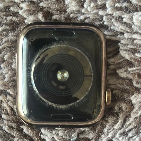 Discover the elegance of the Apple Gold Smartwatch, featuring a sleek square face with rounded corners and a vibrant display. This wearable combines style and functionality, making it an essential accessory for staying connected and organized. Enjoy the seamless integration of technology and design in this premium smartwatch.It has minor wear and tear in the back, but works perfectly fine 🙌🏾 series 5 GPS+ Cellular. comes with the all white band M/L.