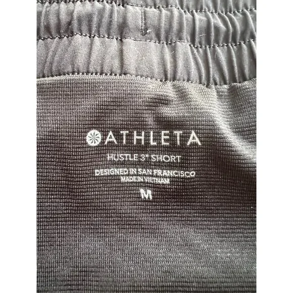 Athleta Women's UPF 50 Hustle 3" Shorts Activewear Elastic Waist Black Size MDescription:Rated Upf 50+ (Excellent Protection)Hidden Key Pocket in WaistbandFully Adjustable Neverend Drawstring Won't Get Lost in the WashRecycled Polyester/spandexMade from Recycled Poly, a Material Sourced from Post-Consumer Plastic Bottles That Helps Lessen Our Impact on the WorldWrinkle-Resistant. Packable Fabric Stays Sleek & SmoothBreathable. Sweat Can Travel Through the Fabric So It Can Evaporate on the SurfaceQuick-Drying. Dries in a Flash for the Ultimate Comfort When Breaking a SweatExcellent Preowned Condition!Waist: approximately 15" flatRise: approximately 10" flatInseam: approximately 3" flatLength: approximately 13 1/2" flatBUNDLE to save!Offers welcome! Quick shipping!