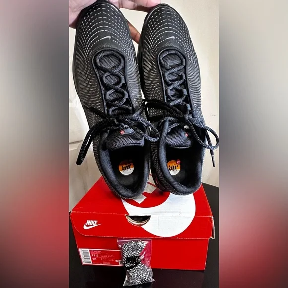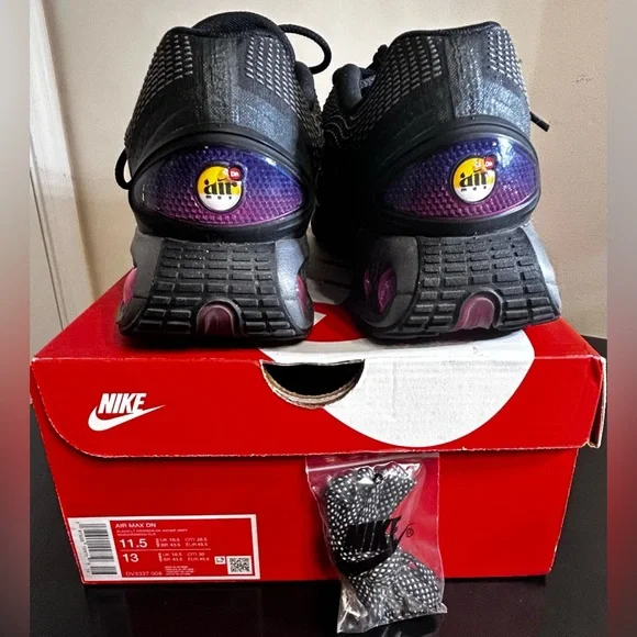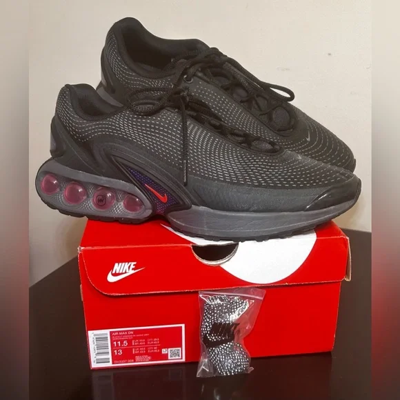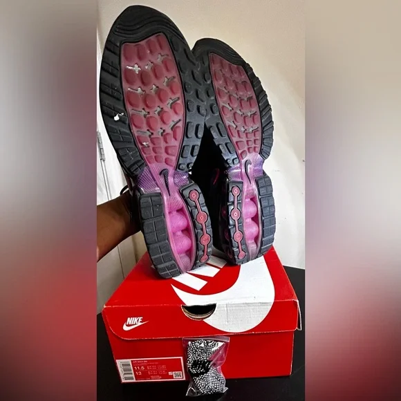 Step into style and comfort with these Nike sneakers, featuring a sleek black and Pink design. The mesh upper provides breathability, while the visible Air unit in the heel offers superior cushioning. Perfect for everyday wear, these sneakers combine modern aesthetics with functional performance.•Unisex •Authentic, Comes with 2 Extra pair of Nike Shoe-Strings: Hot Pink & Multi-Blk & White •Comes in Original Box •Gently worn & clean condition•Men’s: 11.5 •Women’s: 13