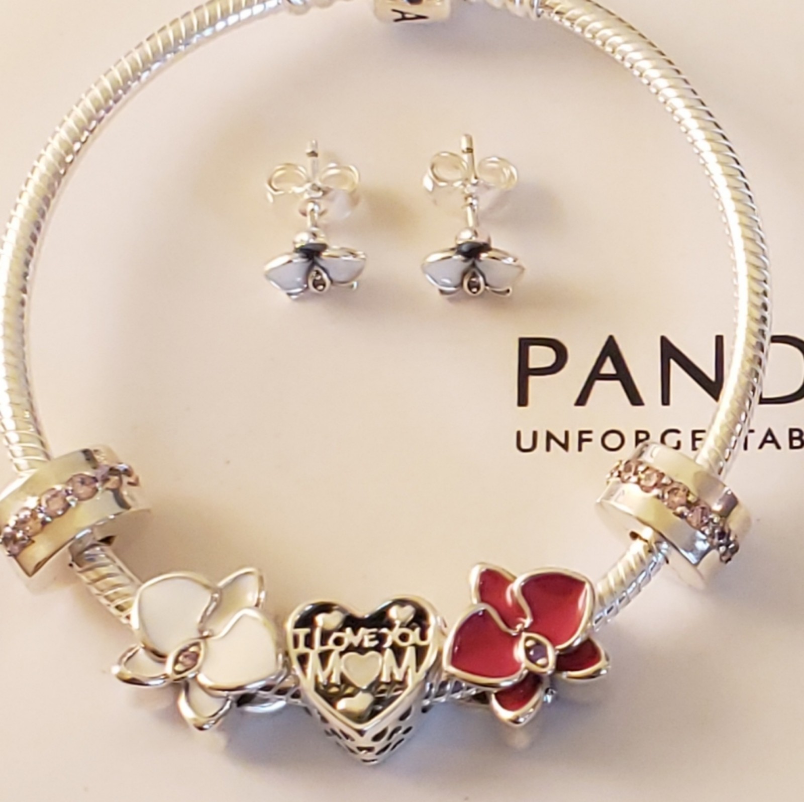 ⭐️⭐️FREE PAIR OF AUTHENTIC PANDORA ORCHID EARRINGS, STERLING SILVER, WHITE ENAMEL & CLEAR CZ ⭐️⭐️