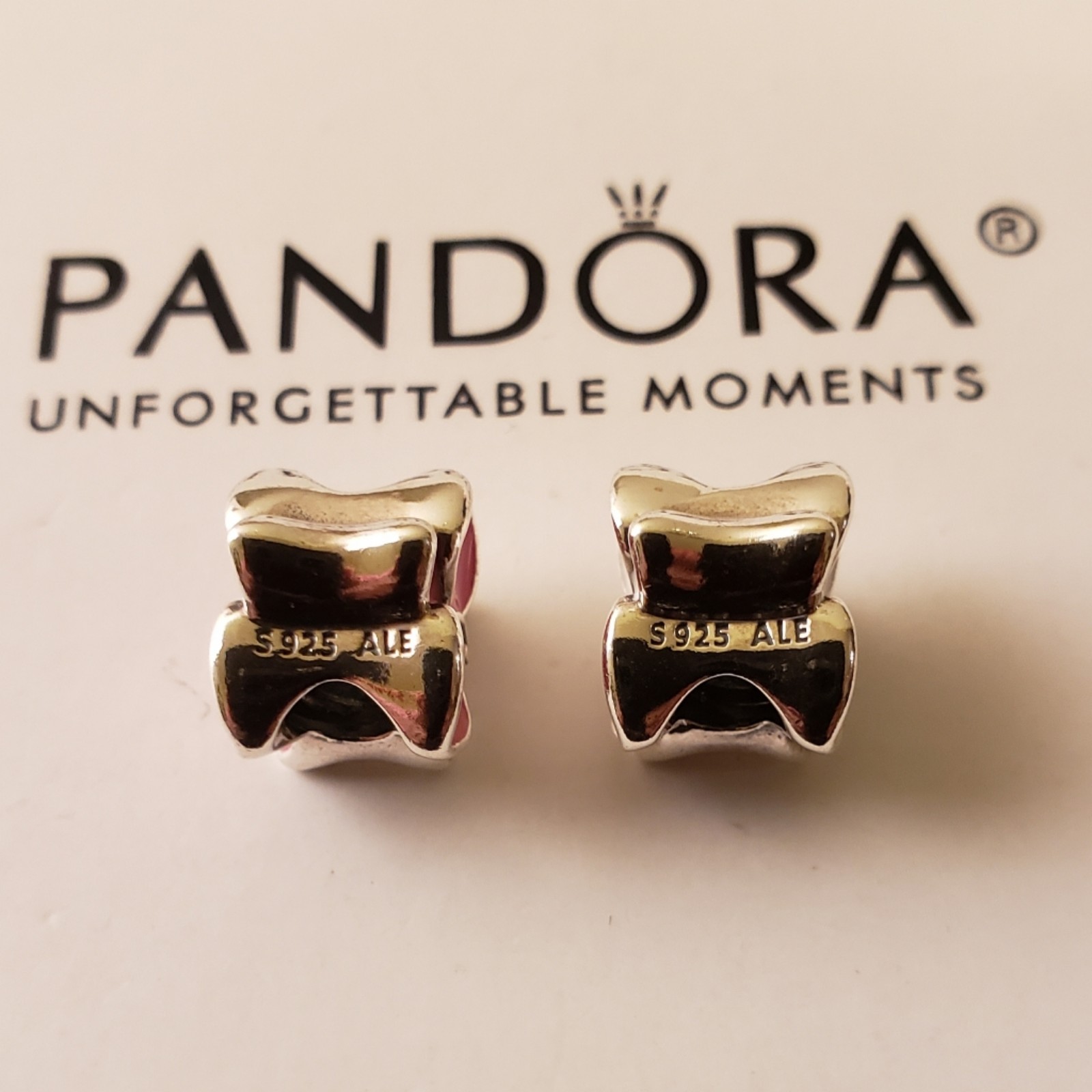 2 Authentic Pandora Shinning Path Clips, Sterling Silver, Pink Cz