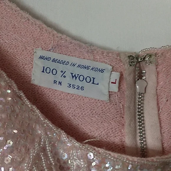 Authentic Vintage 1960s Hand Beaded 100% Knit Wool Made in Hong Kong Sz Large