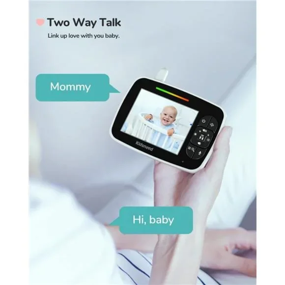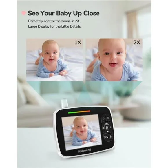 🧿3.5" Large Display Seeing Your Baby in Viewing Control - We listened to the feedback from parents, guardians, nanny, and caregivers when manufacturing our video baby monitor.This baby monitor is equipment with 3.5 inch large display in consideration of smaller screen may be difficult to cover baby’s full view.The Kidsneed SM935A is a baby monitor with camera features such as Pan-Tilt-Zoom. With the controls, you can always have a clear view of your baby from any angle or a close look.🧿Baby Monitor with Night Vision - Automatic night vision mode with clear greyscale infrared images lets you effortlessly check your baby's live situation as you stay in bed at dark night. Now, there is nothing stopping you from doting on your child all day and night with our video monitor.With up to 1200mAh big battery, this system lets you monitor your baby throughout the night on a single charge .🧿Two Way Talk & Temperature Monitoring - The crystal clear two-way audio baby monitor camera allows conversation on both ends as clear as if you were in the same room with your little one. Choose from 4 relaxing lullabies that will help put your little one to sleep.The built-in temperature sensor on the baby camera will send alert to the parent unit. Lets you know when it’s time to adjust the thermostat.