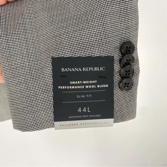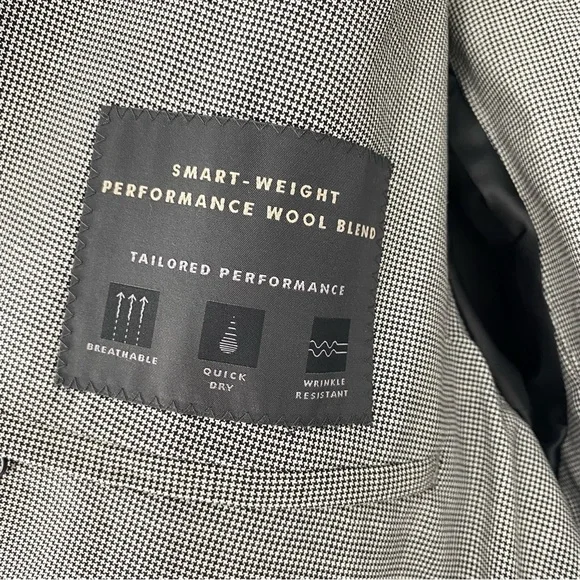 Soft & unpadded shoulders and an unlined body for a fresh look and feel. Made with a breathable, wrinkle-resistant performance fabric with quick-drying, Feature:Notch lapel.Two-button closure.Single vent at back.3 exterior pockets.2 interior zip pockets.Unlined body,lined sleeves for easy on-off.Excellent condition. Size 44L. *** Matching pants available size 34X32****