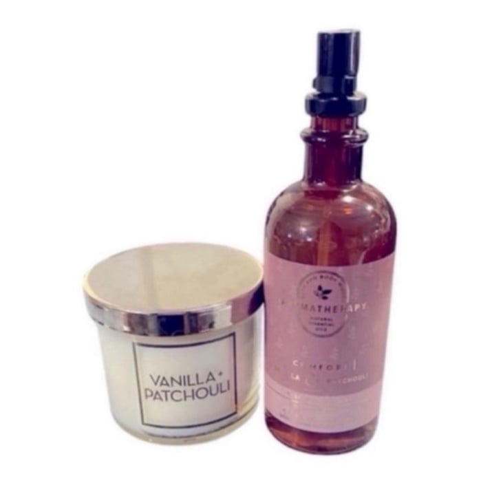 Aromatherapy Vanilla and Patchouli Set - Candle, Essential Oil Mist