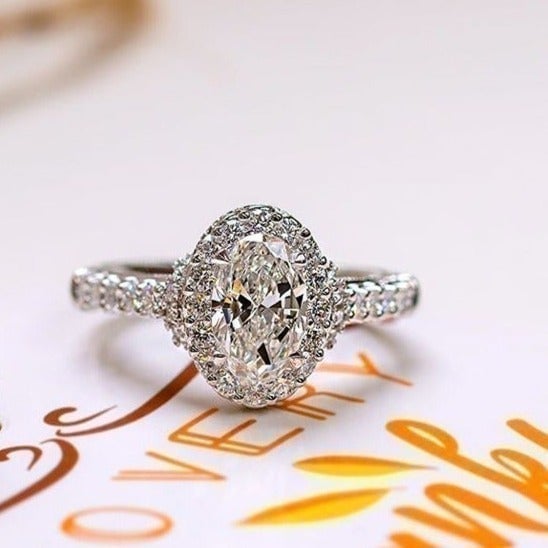 "Beautiful Oval Pure Zircon Cubic Carved Macro Silver Rings for Women, INDN8279