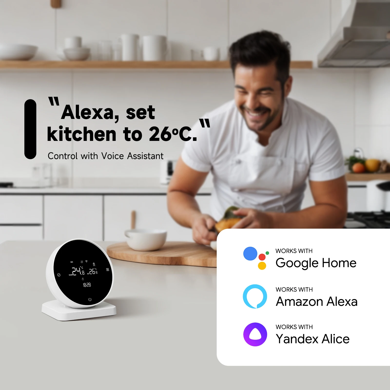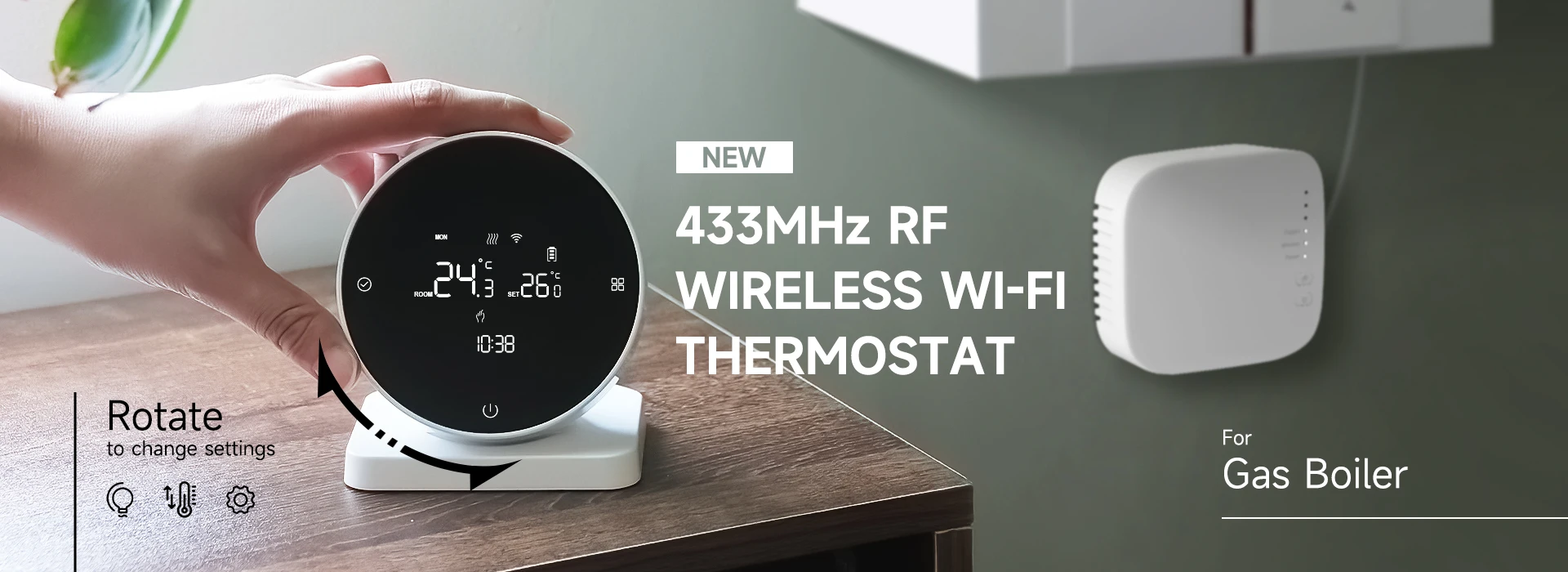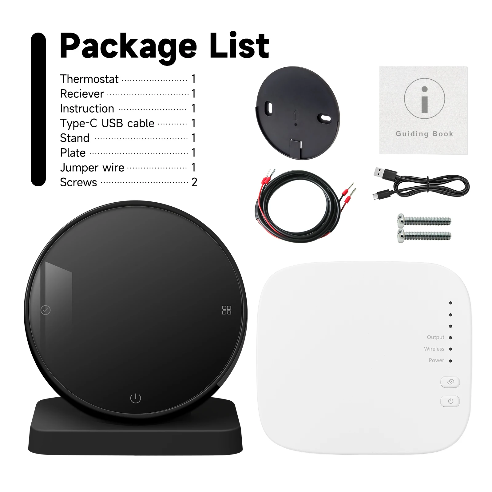 WIFI Thermostat can work with Tuya APP and Smart Life APP, Also support to work with Google Home, Yandex Alice and Amazon Alexa, It's a Wireless thermostat for gas boiler, package including the receiver. The gas boiler need to connect to the receiver! Support USB and Battery powered(two methods can't use together; Batteries are not including in the package)