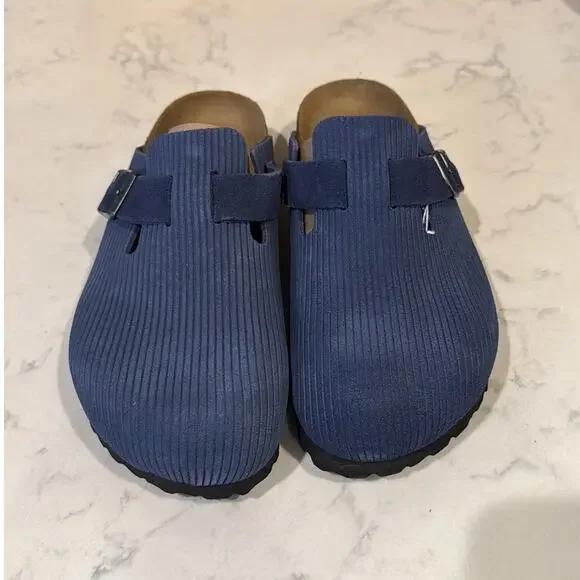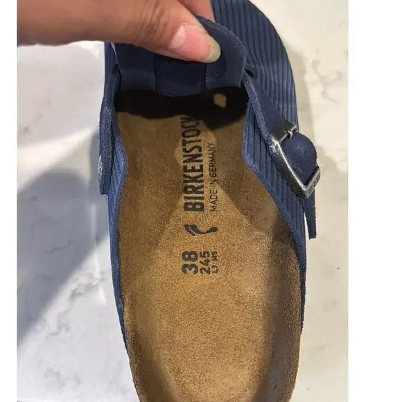 Birkenstock Boston Suede Embossed - Corduroy Indigo size 38 narrow size 7-7.5minimalist Street wear Casual PreppyBohemian Naturalist there seems to be glue drip pic 6 not noticeable when wearing Sold out everywhere