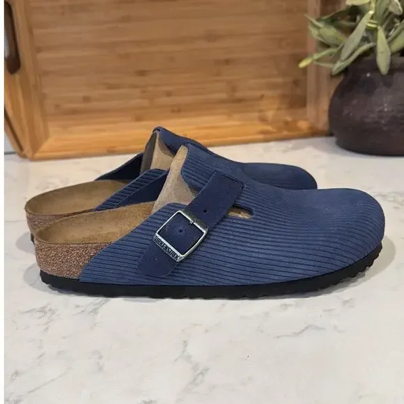 Birkenstock Boston Suede Embossed - Corduroy Indigo size 38 narrow minimalist