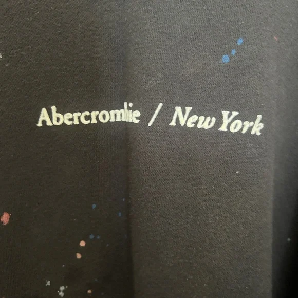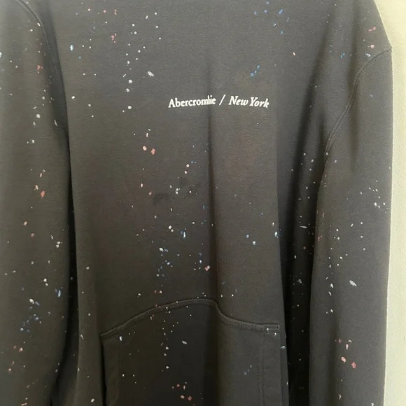 A medium size sweat shirt with a paint splatter design on it. this sweatshirt is used only a few times and in good condition. This Ambercombie sweatshirt is made of a 100% organic cotton, natural mineral dyed. Made also with fully customized SE tech fleecon. Great for cold weather. Please refer to pictures there is a bit of a watermark stain under the title.