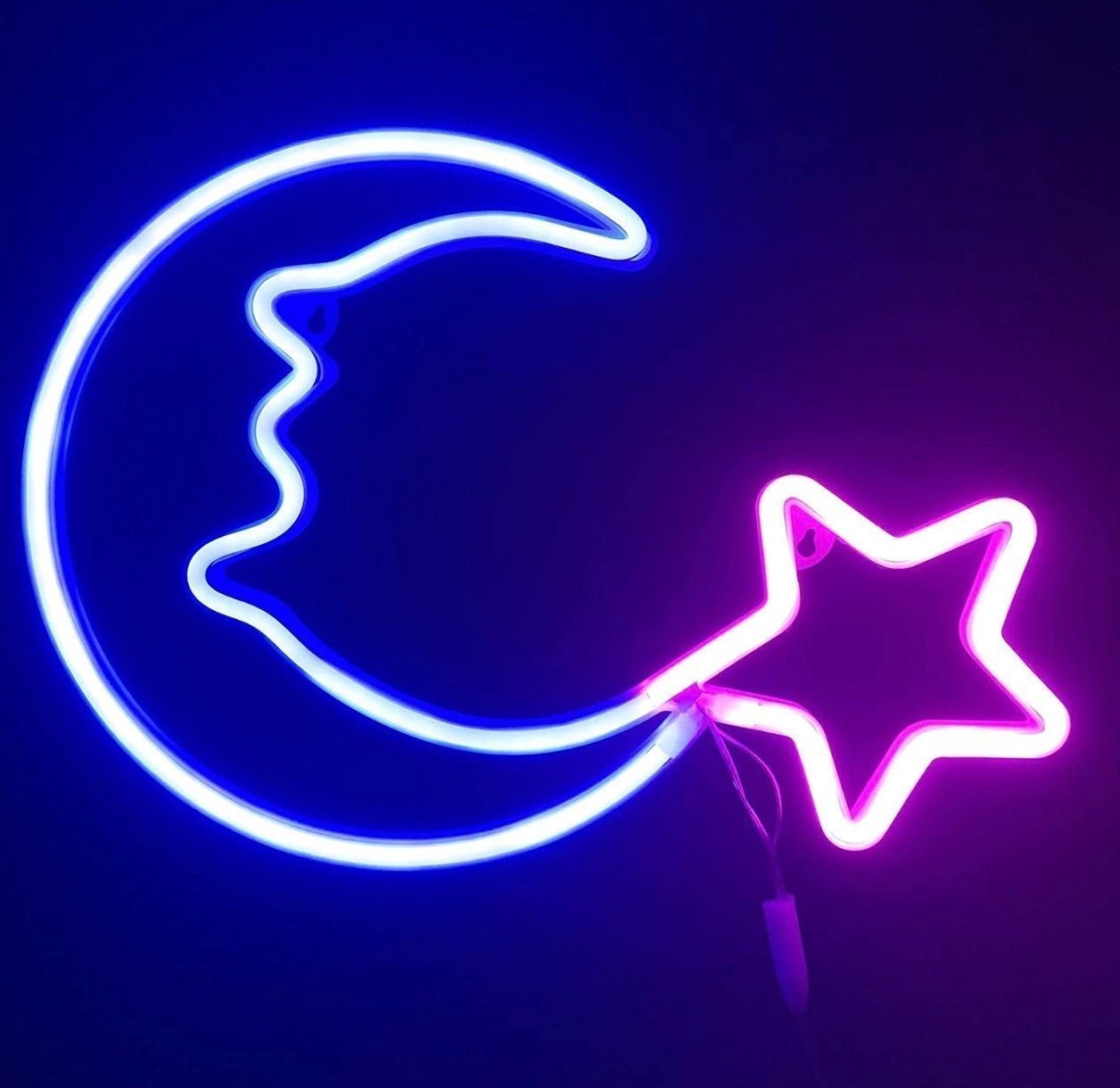 Great Home Decor Light: Moon-star neon sign emits soft and warm light output. Perfect to add a little bit of color to your space and makes your bedroom so cozy!