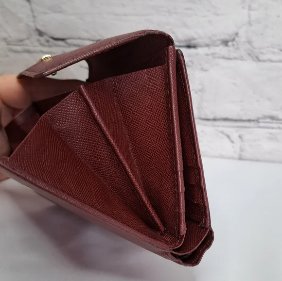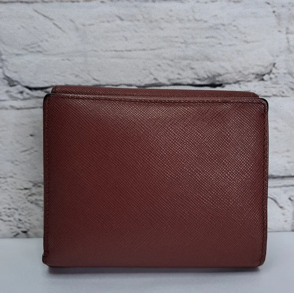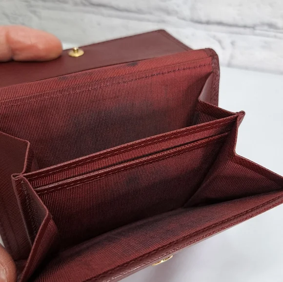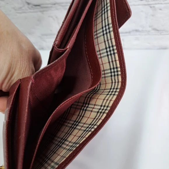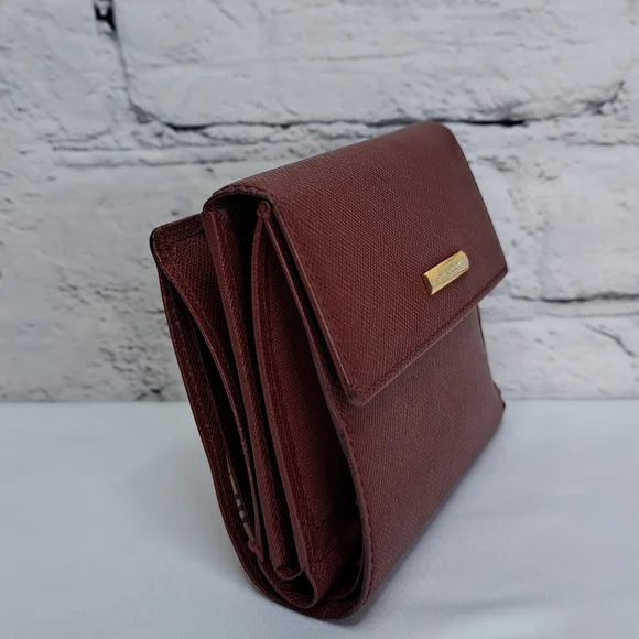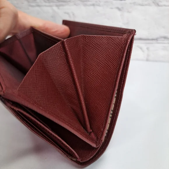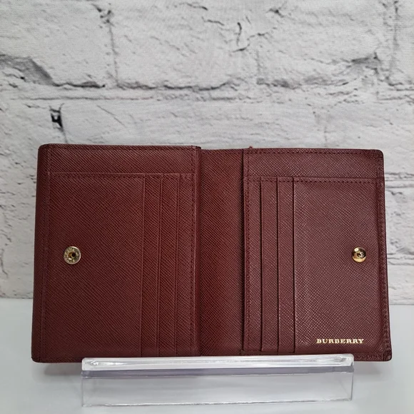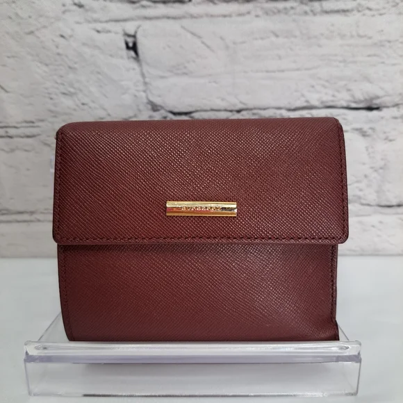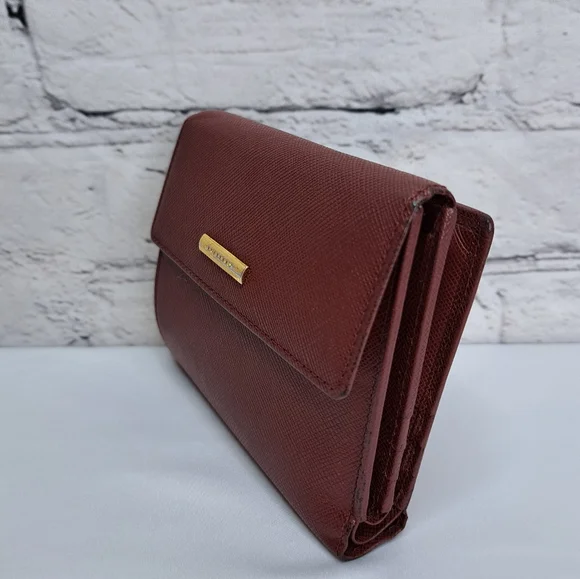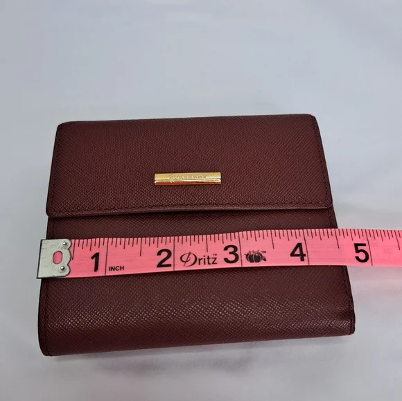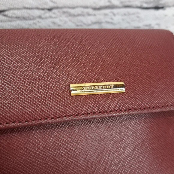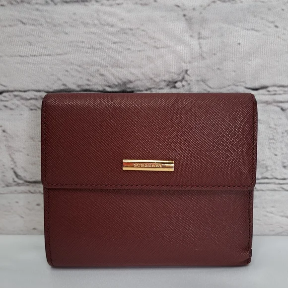 This Burberry wallet showcases a luxurious red saffiano leather finish, complemented by gold-tone accents. Its structured design ensures durability and timeless elegance, making it a versatile accessory for any occasion.Please refer to photo gallery for detailed information about this product. This is a Pre-Loved item, many characteristics exist. I can not guarantee 'unknown flaws'. ALL SALES ARE FINAL Item will be securely wrapped and packed with the utmost Care when shipped.