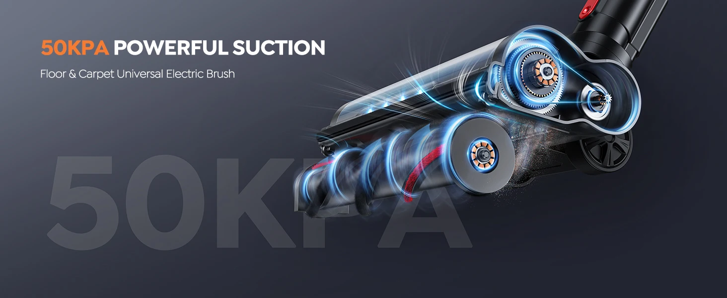 Forget those weak vacuums that always have residue, our BuTure cordless vacuum cleaner is equipped with 500W powerful motor to ensure an unprecedented suction up to 50kPa, dedicated to picking up all surface debris and deeply embedded dirt, beats 90% of the vacuum cleaners on the market.