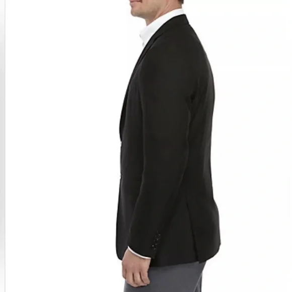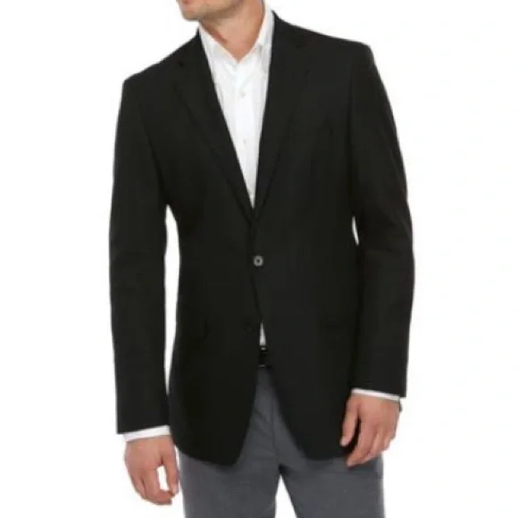 Calvin Klein Slim Fit Sport CoatFeatures:•Slim tailored silhouette that instantly updates your look•The sleek and polished piece is ideal for your collection.•Single Breasted•Front: 2 button closures•4 button long sleeves•Side vents•Besom flap pockets•Fully linen•69% Polyester 29% Rayon 2% Elastane•Dry CleanApproximate measurements laid flat - shoulder to hem 32”- underarm to underarm 22”- shoulder to shoulder 19”- sleeve length 26”SS-1