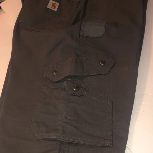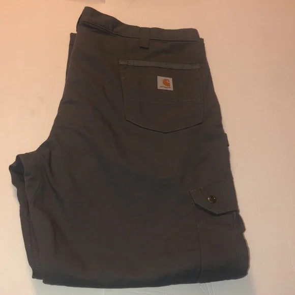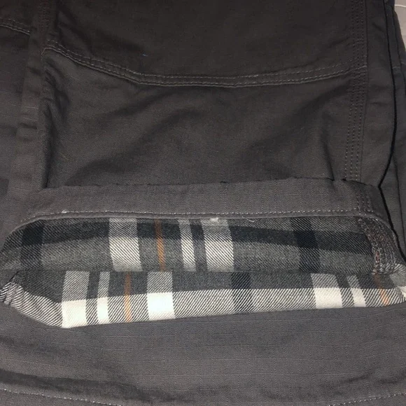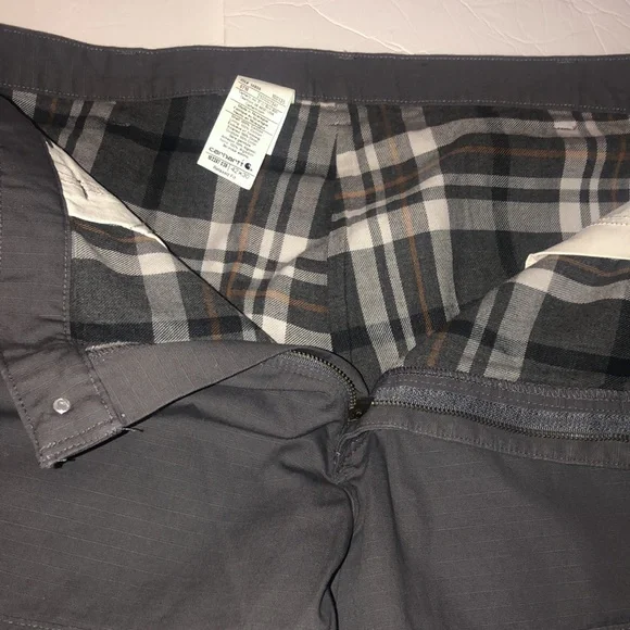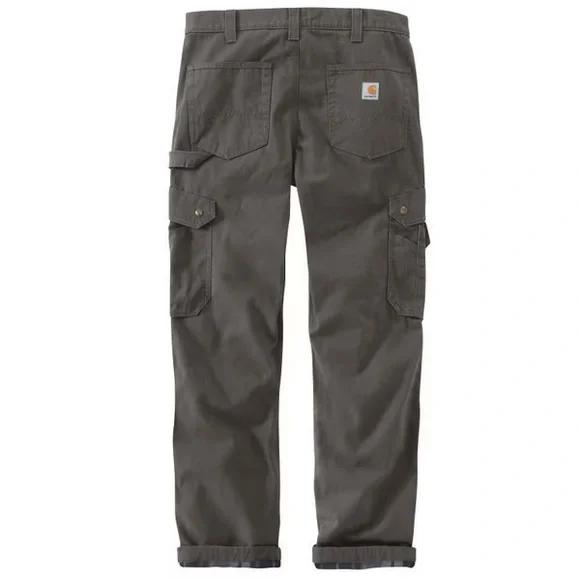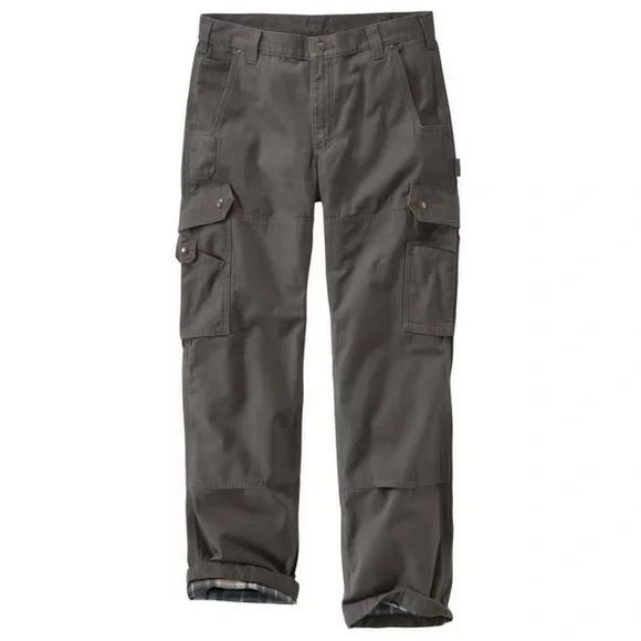 Carhartt Ripstop Flannel Lined Cargo Work PantCamp site or jobsite, these men's cargo pants are built for warmth and comfort. They're made of durable, abrasion-resistant ripstop and lined with soft cotton flannel. The double front gives you extra warmth and protection and accommodates knee pads.Features:9.25-ounce, 100% cotton ripstop3.8-ounce, 100% cotton flannel lining for comfortMore room to move with a comfortable fit through the seat and thigh and a straight legDurable Cordura®-lined front and back pocketsUtility and cargo pocketsDouble-layer knees with openings for adding knee pads and cleaning out debrisComfortable gusseted crotch for more stretch between the legs