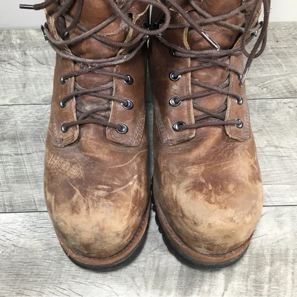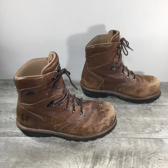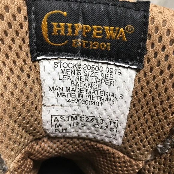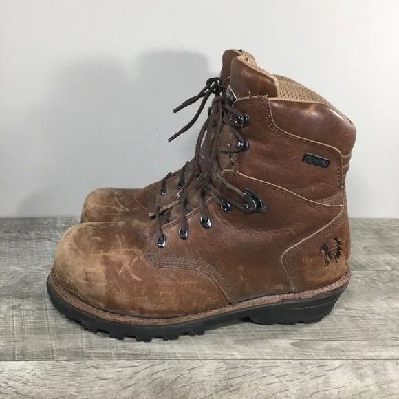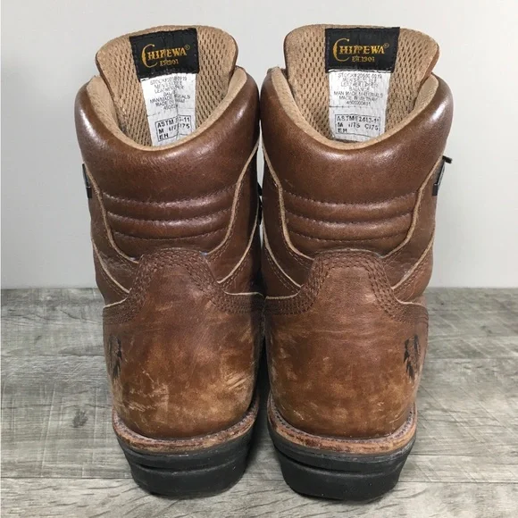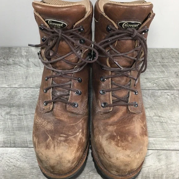 Up for sale is a good condition pair of Chippewa Men’s 20500 Waterproof Leather Work Composite Safety Toe Boots. Size 9 EE, Extra Wide. Leather uppers. Rubber soles. Clean inside and out. Very well built and sturdy. Approximate Outside Dimensions: 11.75 inches heel to toe by 4.5 inches across the ball of footwear by 2 inches tall heels by 8.75 inches tall.