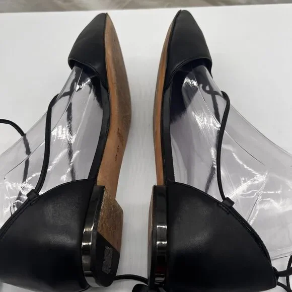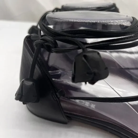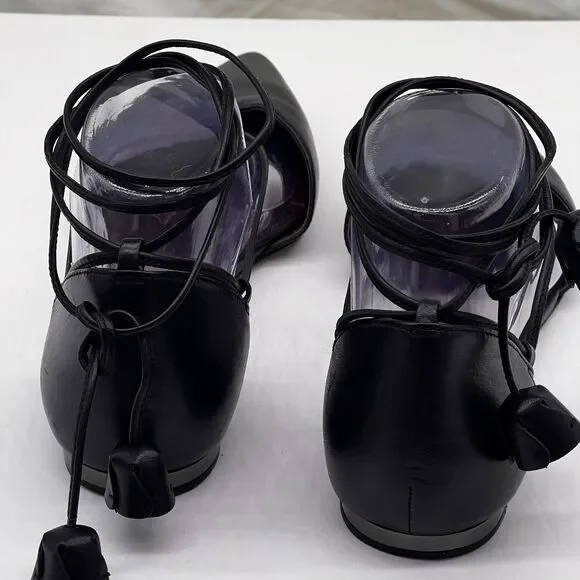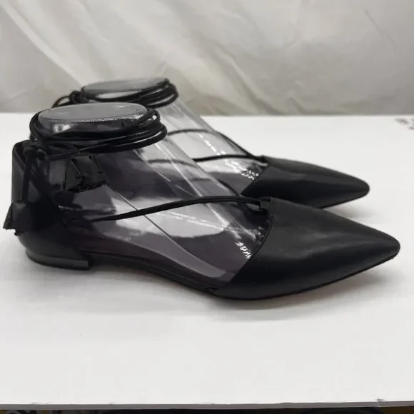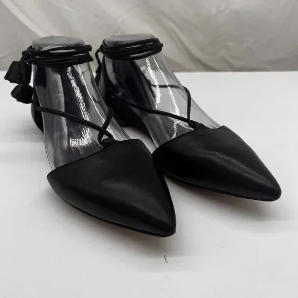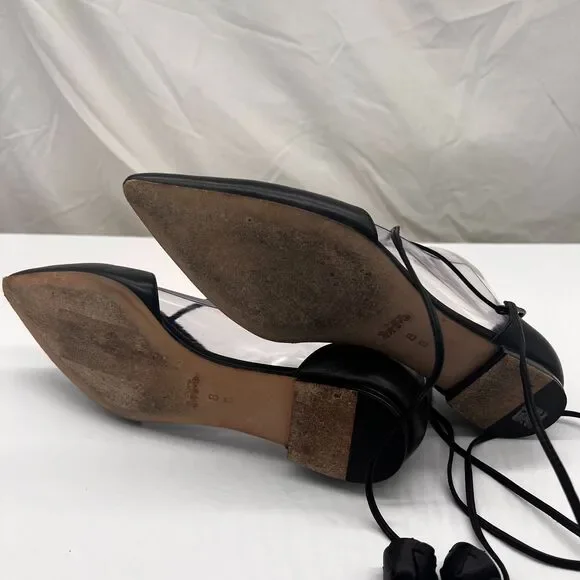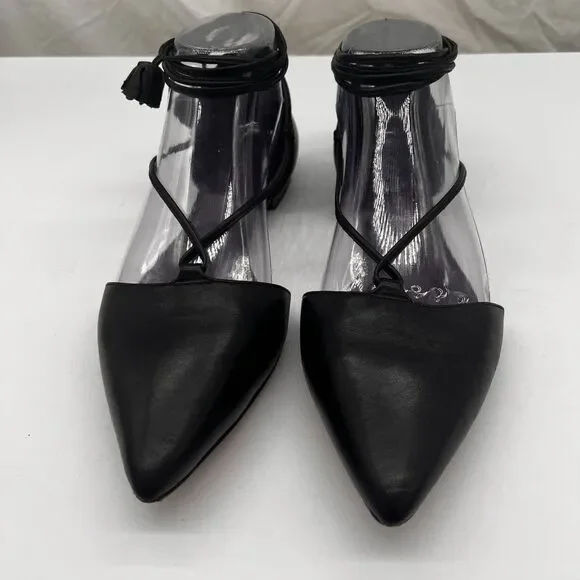 These are Coach Johnson leather lace-up ballet flats in a size 8 for women. They feature a pointed toe design and are crafted from soft shine calf leather in a vibrant red color. Ideal for various occasions such as travel, casual outings, and business meetings, these flats offer a stylish and comfortable option for everyday wear.(#7)