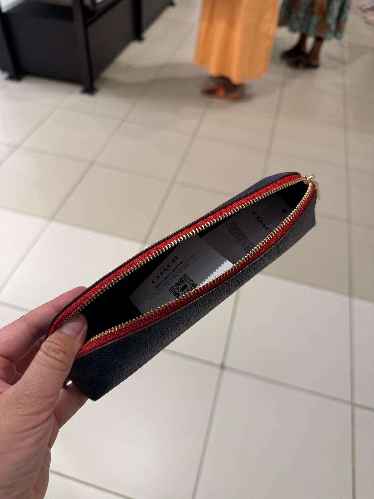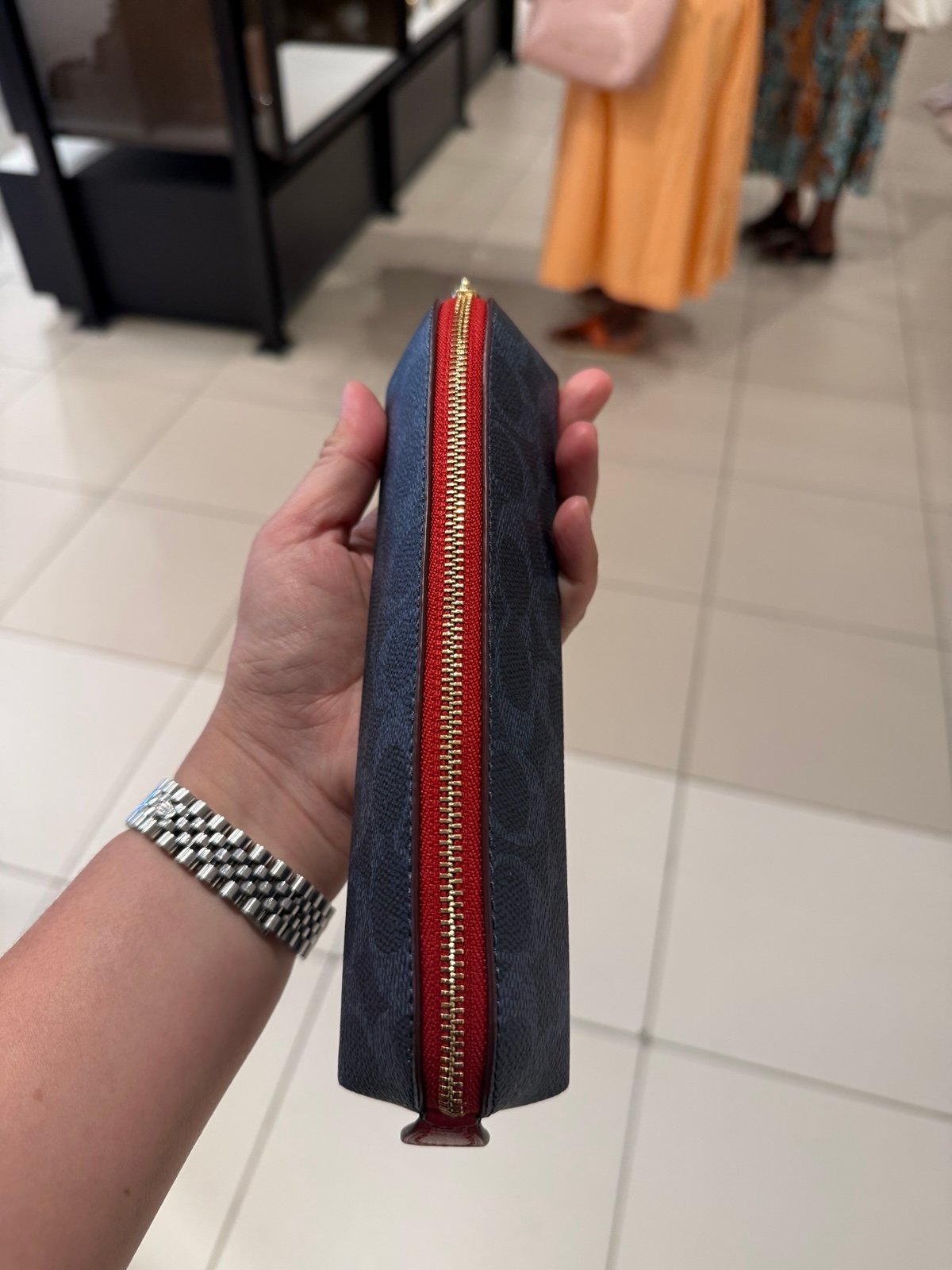 Coach Pencil Case in Signature Canvas & Leather Gold/Denim/Bold Red CZ206 NWT
