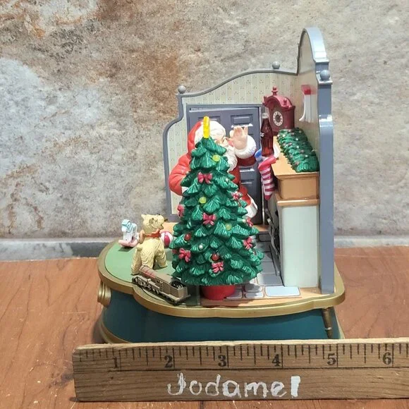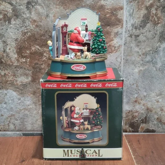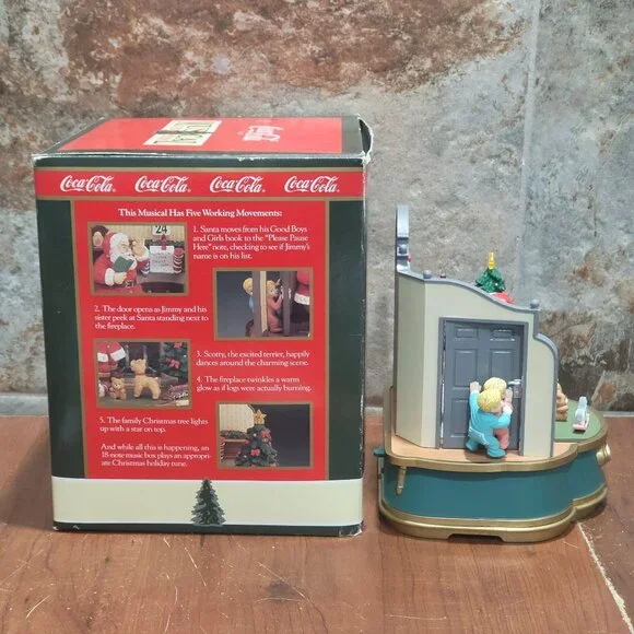 Coca Cola Musical Collection Santa Claus Music Box Lights Up 1993 Plays Santa Claus is Coming to TownRequires 2AA Batteries, NOT INCLUDED.Measurement: 6 x 5.25 x 6.5 inWeight: 1 lb 0.6 ozBox Measurements: 8 x 7 x 8 inBox Weight:1 lb 7.5 inYour item may come in a re-used box with some labeling from other companies In my effort to recycle and re-use. Thank you for supporting my small business.Features:• Music BoxCondition: Pre-Owned Good