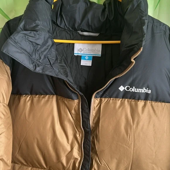 Columbia men’s Puffect II Insulated jacket. This men’s jacket will keep you cozy and warm. Insulated puffer jacket is water resistant and has down like feel. Zip up front and side pockets with a soft chin guard. Sporty black and copper color with logos on the coat. New with tags size men’s XXL. Slick and classy looking!!