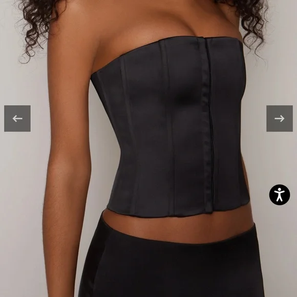 Have you met our Satin Corset? A true closet hero, it features everything we love about a classic corset: boned structure, boudoir-style hook-and-eye closures and a lattice back. More than an occasion top, you can wear it over and under your favorite pieces.Strapless necklineFront hook-and-eye closuresLattice back closureBoned bodice100% Polyester