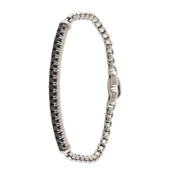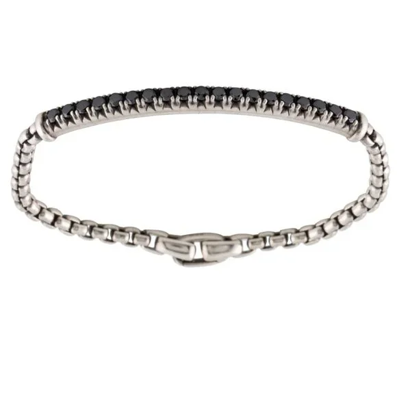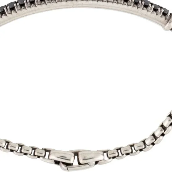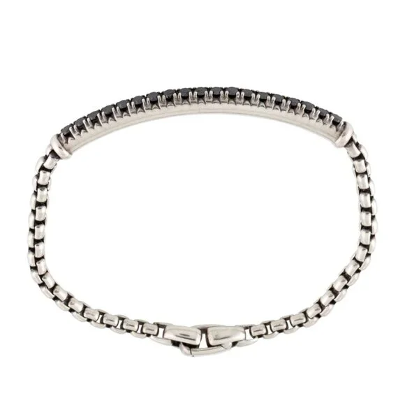 DAVID YURMAN DIAMOND 1.33CTW STERLING SILVER 925METRO LINK BRACELETSterling Silver 925Metal Type: Sterling Silver Marks: 925, Designer Signature: ©D. YurmanTotal Item Weight (g): 17.5 Serial Number: 4734X061125A certified Gemologist has inspected this item. As the mounting permits, all diamond and gemstone grading is done under GIA standards. All gemstone weights and measurements are approximate.Gemstone: DiamondCarat Weight: 1.33Stone Count: 19Stone Dimensions (mm): Stone Shape: Round Brilliant Color Grade: Color Enhanced Diamond Hue: BlackClarity Grade: Included Inside Circumference: 6.75" Width: 0.25"Estimated Retail: $2,700.00 Condition: Excellent-Faint ScratchesDesigner: David Yurman Item # DVY152986