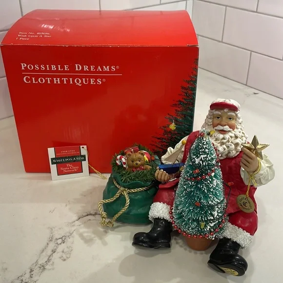 Wish Upon A Star Vintage Santa1998-1999 Exclusive OfferingSanta is battery operated - see videoRequires 2 AA batteries (not included)Clothtique Possible DreamsDepartment 56Original box and tagsVERY GOOD CONDITION* the battery cover is broken, however, the lights still work *From a smoke free homeApproximately 6” tall 8” wide⭐️⭐️New to poshmark? ⭐️⭐️Sign up using my code JJS_HOME and redeem $10 off your first purchase!
