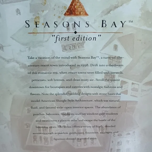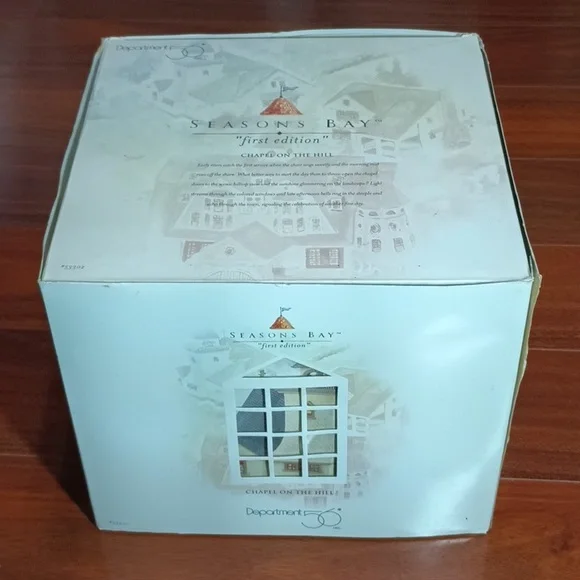 Department 56Seasons Bay Chapel on the Hill 56.53302734409121485First editionIntroduced December 1998Retired December 1999This was unopened before I took it out to photograph. Perfect condition except one spot that the artist's brush smudged the wall color on the entrance floor. shown in last photo.