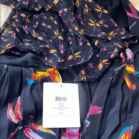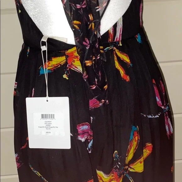 RARE & SOLD-OUT! Diane Von Furstenberg Justine Silk Jumpsuit Size XSTurn heads in this hard-to-find, sold-out Diane Von Furstenberg Justine Jumpsuit, a whimsical yet sophisticated statement piece perfect for spring, summer, and special occasions. Crafted from luxurious 100% silk, this jumpsuit features a delicate dragonfly print, adding a touch of charm to its elegant A-line silhouette.Features:Surplice halter neckline with self-tie straps for a customizable fitDramatic open back with a chic back tie closureFlattering wide-leg design for effortless movement and eleganceInvisible back zip for a sleek, seamless finishLightweight & breathable silk construction with a soft polyester lining for comfort🌿 Perfect for Any Occasion:Whether you’re headed to a spring wedding, Easter brunch, summer party, cruise, or vacation, this jumpsuit exudes effortless style and sophistication. Dress it up with heels and statement jewelry for a cocktail event, or keep it casual with sandals for a chic daytime look.📌 Size: XS📌 Color/Print: Dragonfly print on lightweight silk📌 Condition: New with tags Sold out & hard to find!Don’t miss your chance to own this DVF collector’s piece—grab it before it’s gone!Approx 62” length Approx 31.5” inseam Approx 26” waist Approx 30” leg opening
