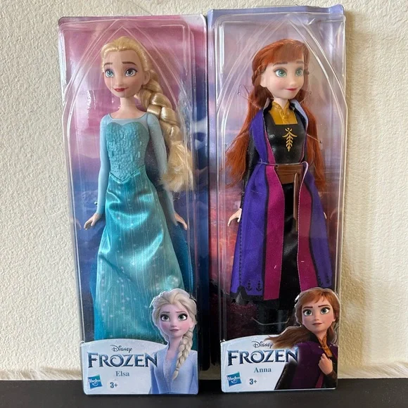 Disney by HasbroBeautiful Anna and Elsa Dolls11in approx.Allow arms head and leg movement Beautiful Princess Outfits Beautiful Long Blond and Red Hair**Mini Diary /Notebook - Note, this notebook is a preloved item. Couple of pages removed. Overall, great condition. Recommended for Ages 3 and up! Boxed Dolls. Anna’s box shows a dent on the upper right but the doll condition is excellent. Collectible, Play Toy. Perfect for Nursery Room. Accept reasonable offers.