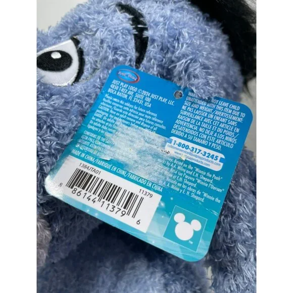 Disney Winnie The Pooh Eeyore Weighted Plush 14" Jumbo PlushNew With TagsIncludes: 1 Disney Eeyore weighted plush.Cuddly Plush Pal: Squeeze, hold, and get a cozy cuddle any time of day or night with the Disney Classics Eeyore Weighted large plush toy.Soft and Squeezy: Filled with approximately 2 pounds of weighted pellets, this Disney plushie is crafted with irresistibly soft fabrics, tactile fill, and a super-satisfying weighted bottom for soothing sensations or fidget fun.Classic Disney Charm: This 14-inch, stylized Eeyore plushie features embroidered facial details and super-soft tan plush fabric.Officially licensed Disney toys by Just Play Not microwaveable.Smoke & Pet Free